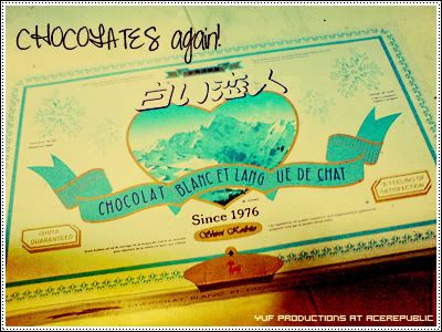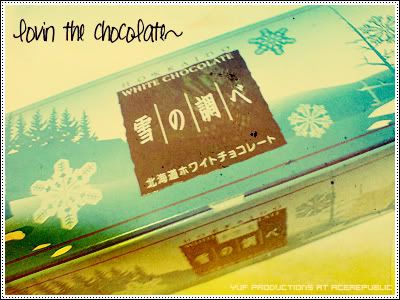 grandma's back from japan! bought me some goodies str8 fr JP! oOOooo 幸福 ! thanks nanny! i bet she spend alot of money. things arent cheap at japan. but lovin the chocolates. they come in all sorts of flavors huh! o so gotta get my butt there someday! MUST! haha