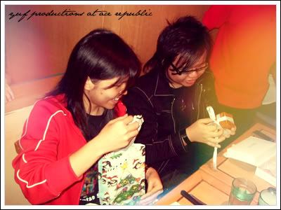 ok stop. now merry making moments, last friday, 12/dec/2008. we celebrated the december babies birthday. along with the magnificos dinare and some s.i.t. peeps. "i was performing at ps" but the mighty mighty me manage to get a sup, so i joined the rest. HOHOHO! we caught Bolt. the movie was alright, but the 3D wow! i did shed a tear. cries~ *so touching* haha. ok PIC SPAMS! picture credits//mysonyericsson//ruby'scam//alyssa'scam :]
