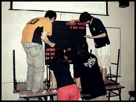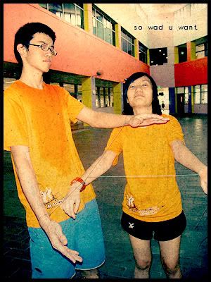 Jamesseriously i dunno who the hell are u until agm. but through those pictures, it doesnt seem to be the case since u helped out in BO. so ya~ hmm i find u are a very careful person, a very knowledgeable person and have 2 kinds of personality oso! u oways come out with those chim chim phrases, which i dun really understand but yet i understand from the way u say it. i hv oways wanted to tell u sth, actually wanted to shout at ur face. "You can get urself dirty playing soccer but u cant get urself dirty with paint! o wth!" haha. ❤