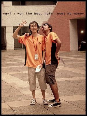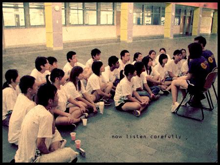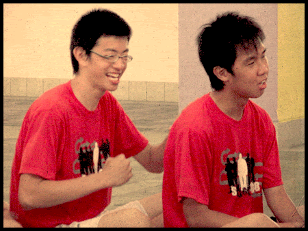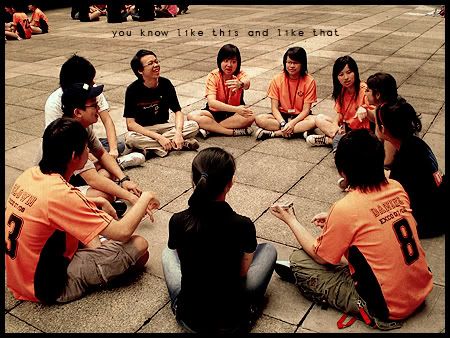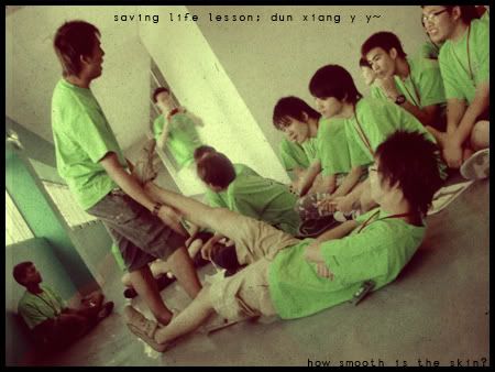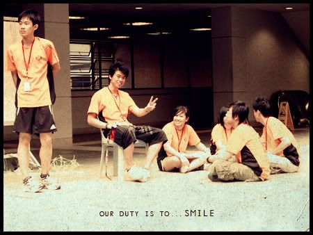 Guang Yunthe first time, FMO of course. where the mass meeting is held & end of it, u just stand up and "nag" at everyone else. guys, its the last 3 days bla bla bla. haha then when jewelry came to talk to wenfang&me u came and intro urself. "Hi, i'm guang yu, not lee guan yew." seriously i think my first impression of you is kinda bad eh~ but nevertheless u are a fun guy. yet sometimes irritating but tt's ur style. but i think u are still one guy who want some quiet times because i think i was the only person who saw u sitting alone behind the staircase door :] ❤