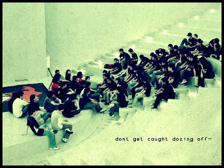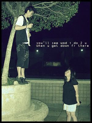 i didn make my last words so i think i shall do it here then. hmm maybe not last words. hee hee, we will oways be seeing each other, i hope :] i shall go in the opposite sequence of the notice board. so ctrl+f to find ur name if u are to lz to scroll or cant find ur name.