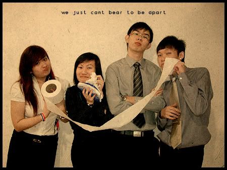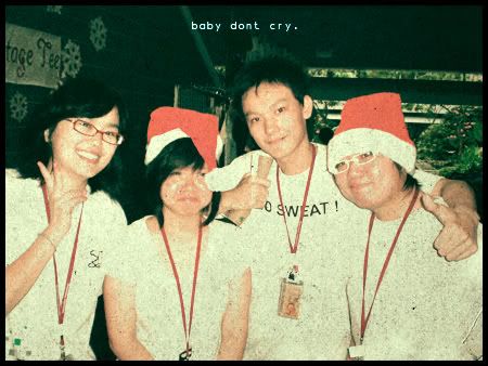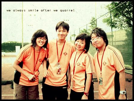 Nananana banana~ the first time i met u, it was weird. i think it was u if i'm not wrong. i asked on my behalf of my junior wad size of t-shirt u were wearing because they were making the FO t-shirt lists. then when i asked, u turn to me, with ur eyes in doubt, thinking "huse this weird fella?" LOL. u are a really v nice girl, oways thought of others b4 urself. many times u were unhappy, it makes us sad as well. hope u smile more girl. &one thing i have oways wanted to tell u, maybe richard does oso, both us ICs are terribly sorry for not including u in one of XMAS's last meetings, as its a sensitive issue n u werent involved thus we did not want to trouble u. so sry tt we made u felt unpleasant. SORRY! ❤